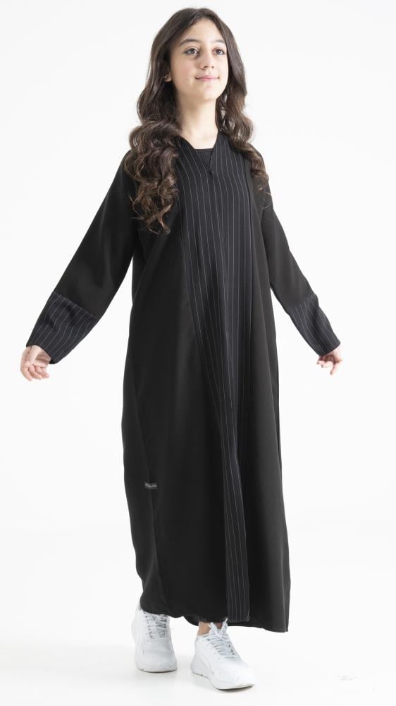 - وصف: عباية بناتي أنيقة ومميزة بتصميم مقلم على الجهة الأمامية، تمنح الفتيات مظهراً أنيقاً وعصرياً في جميع الأوقات، مثالية لإطلالة يومية مميزة.