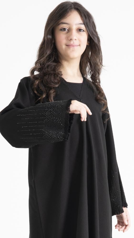 عبايه كتــف بناتي بتطريز على أطراف الأكمام