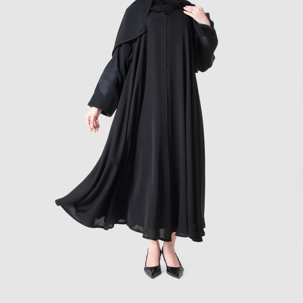 عباية كلوش تنساب بانسيابية راقية، مصممة بقصة واسعة تضفي لمسة من الأنوثة والرقي.