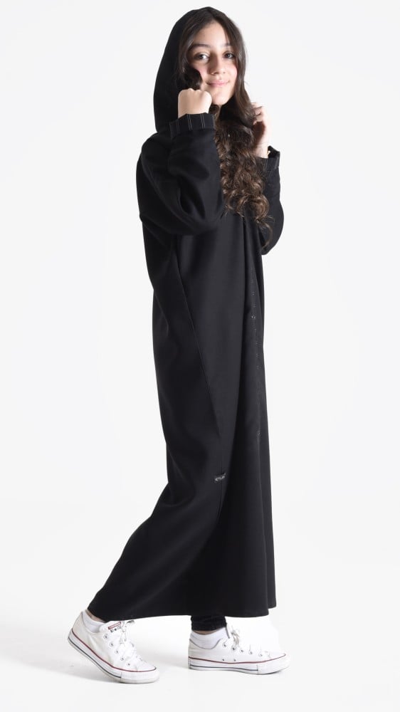 نوع العبايه : عبـــاية بناتي على قبعه رأس مزينه بقيطان على العبايه