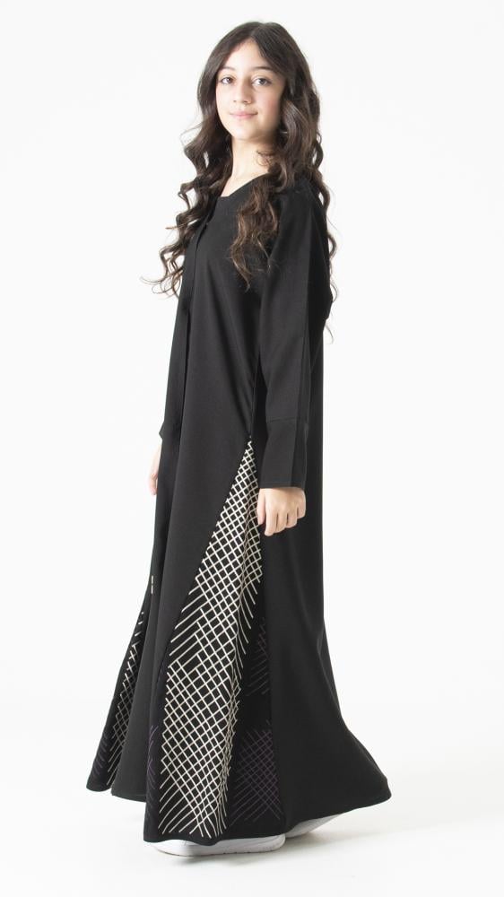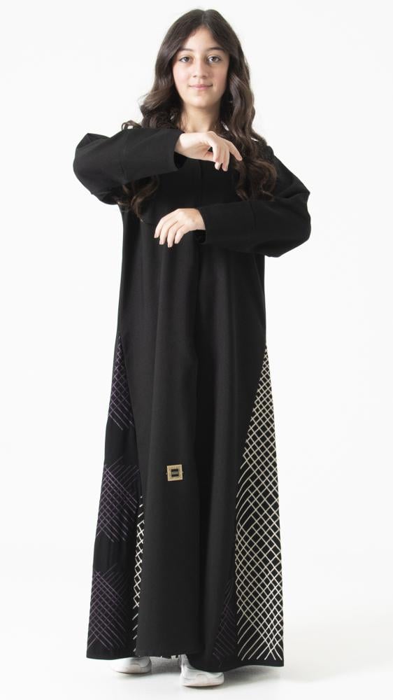 نوع العبايه : عبـــاية بناتي كلوش منسوجه بتشكيلة على جوانب العبايه