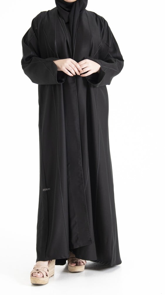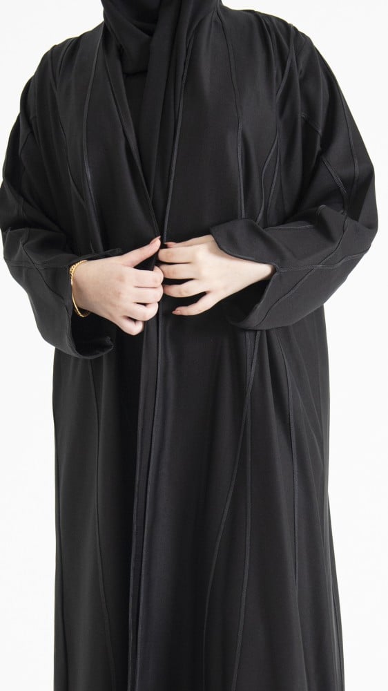نوع العبايه : عبـــاية كلـــوش مزينه بقيطان باللون الأســـود
