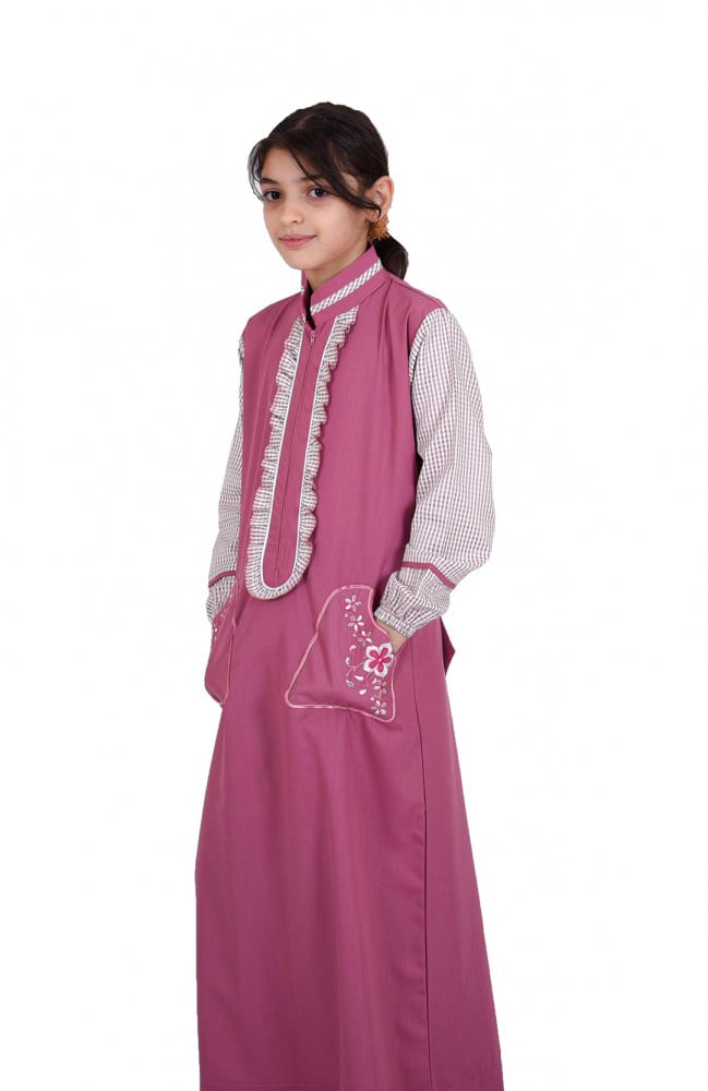 مريول أبتدائي وردي كامل بجيوب أماميه